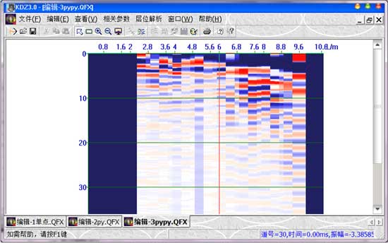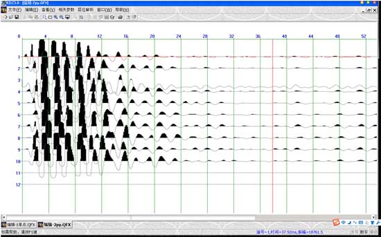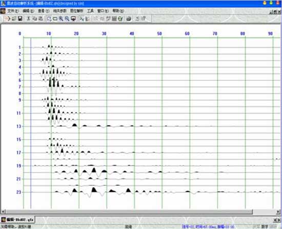 KDZ震波自動解析系統包括了KDZ1114-6A30礦井地質探測儀中的所有功能的解析。解析方式有自動、半自動和手動三種,同樣設有專家系統,分別適用于入門級、熟手和專家使用。基于電腦平臺,故操作更加快捷方便,并有填色功能(波形可變為彩色),使波形分析更直觀、異常更明顯。整個軟件的界面親和,使用方便。