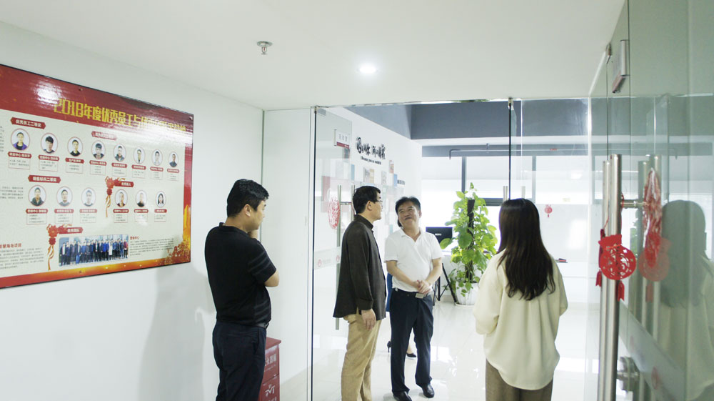 公司副董事長、總工程師李培根、總經理林契聲、副總經理王迪等領導陪同參觀了研發中心、公司產品展廳。參觀過程中,汪董事長充分肯定了公司研發團隊嚴謹的工作態度、公司歷年來所取得的成果與榮譽。
