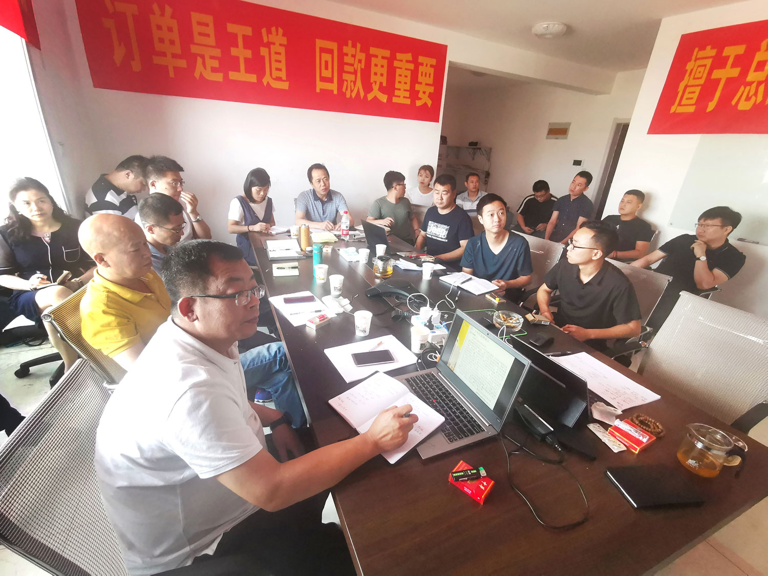 營(yíng)銷中心總經(jīng)理王迪主持本次會(huì)議,銷售經(jīng)理和技術(shù)部門經(jīng)理做了上半年度述職報(bào)告,認(rèn)真總結(jié)上半年工作業(yè)績(jī)并提出了下半年的工作規(guī)劃。公司領(lǐng)導(dǎo)與營(yíng)銷中心團(tuán)隊(duì)進(jìn)行了深入的交流,小伙伴們積極發(fā)言,獻(xiàn)言獻(xiàn)策,會(huì)議氛圍輕松熱烈。